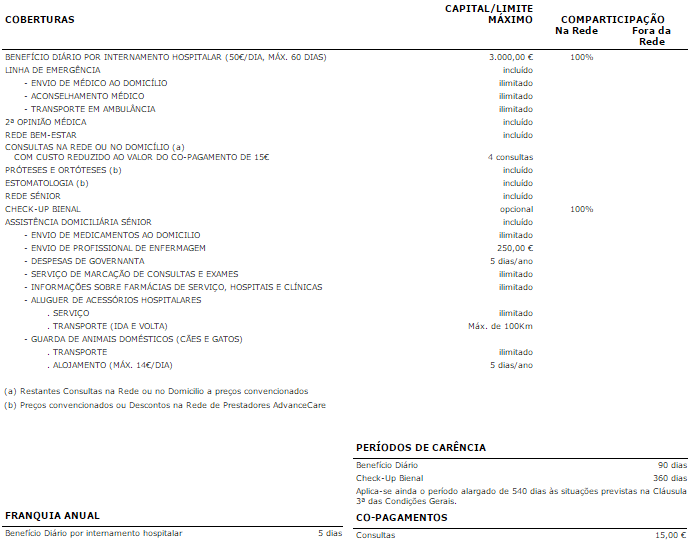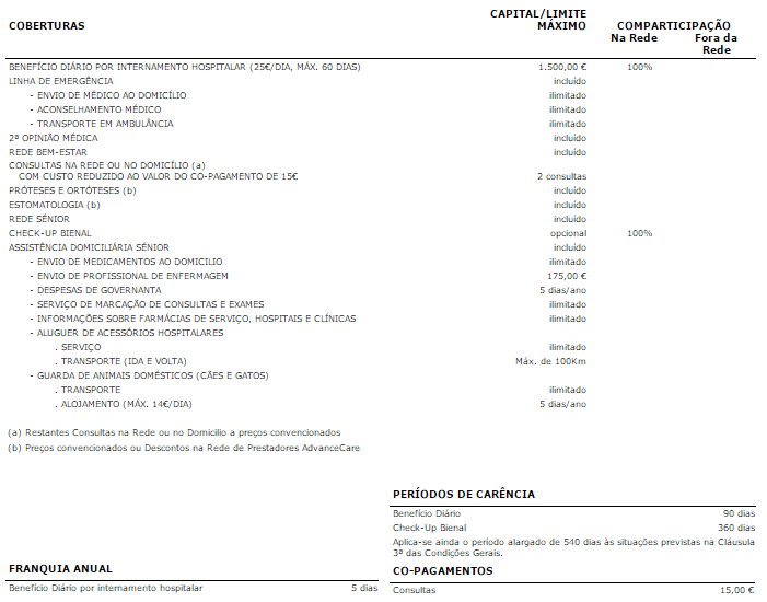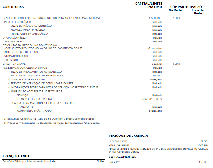 Benefício Diário por internamento hospitalar1.500,00 €3.000,00 €4.500,00 €